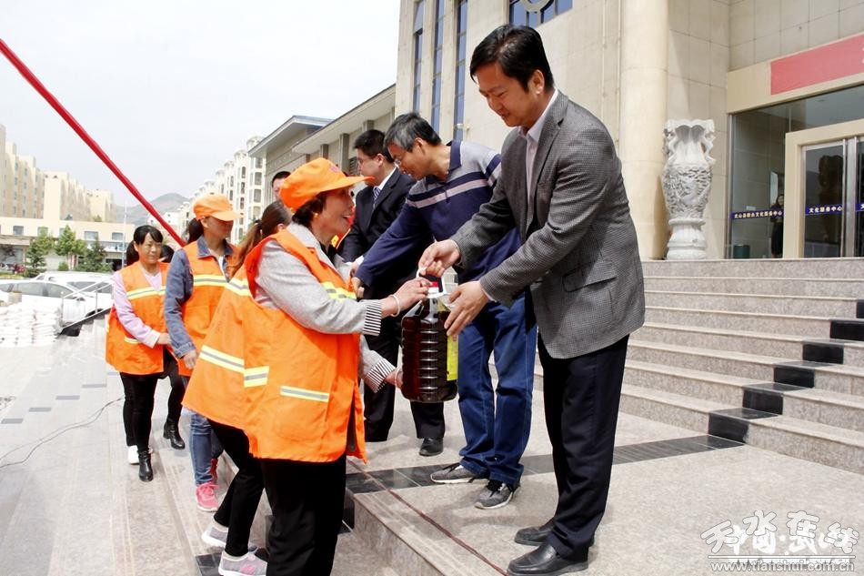何敬忠代表县四大组织向广大环卫工作者致以亲切的问候,向甘肃银行武山支行的慷慨捐赠表示感谢。他说,环境卫生是城市的第一形象,近年来,县委、县政府高度重视城市环卫综治工作,以优化人居环境、建设美丽武山为目标,深入实施“三城联创”和城市环境卫生综合整治,不断加大环卫投入,充实环卫保洁力量,全县环卫基础设施建设不断加强,城市面貌发生了明显改观。特别是全县环卫战线广大职工务实苦干,任劳任怨,不怕脏累,起早贪黑,用勤劳的双手装点出城市的清洁与美丽,极大地改善了广大市民的工作生活环境,彰显和提升了武山城市品位和文明形象。