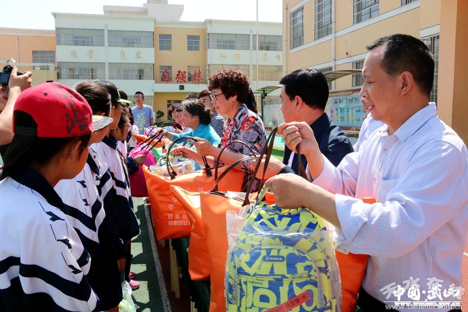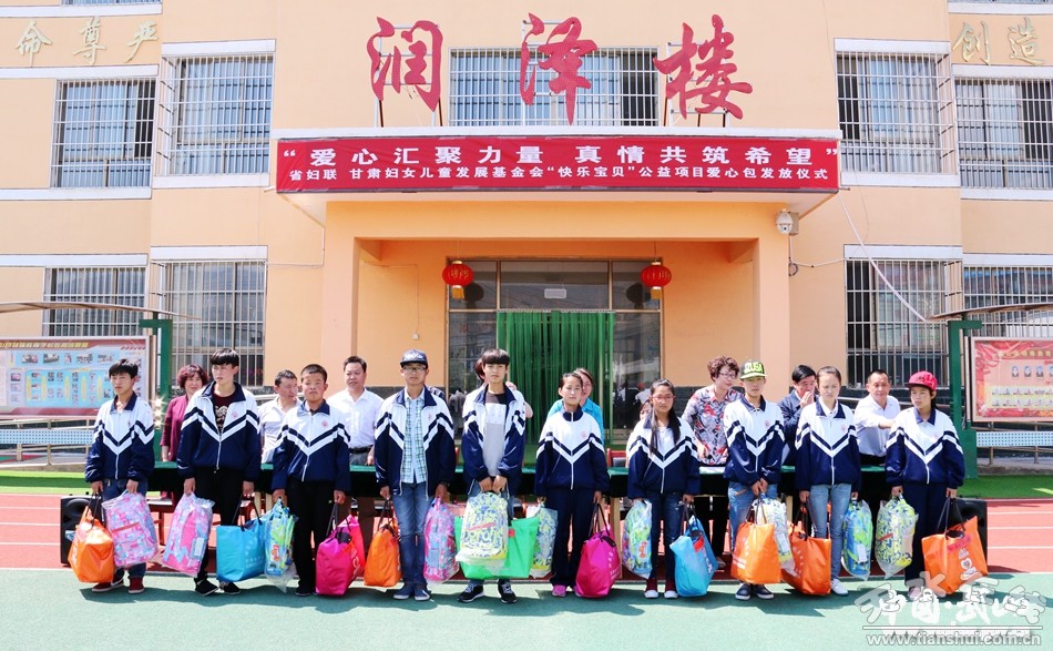 传递人间大爱,见证真情善举。6月16日,由甘肃省妇联、甘肃妇女儿童发展基金会联合发起的“快乐宝贝”公益项目爱心包发放活动在武山县举行。省妇联党组成员、副主席张新兰,天水市妇联副主席郭湘,县委常委、统战部长唐玉芳,县政协副主席赵小强出席发放仪式。县教体、民政、妇联、残联等部门负责人及武山县特殊教育学校全体师生80多人参加发放活动。活动共为全县177名困境儿童送来衣服、鞋子、书包、字典、保温杯等价值近18万元的爱心物资。