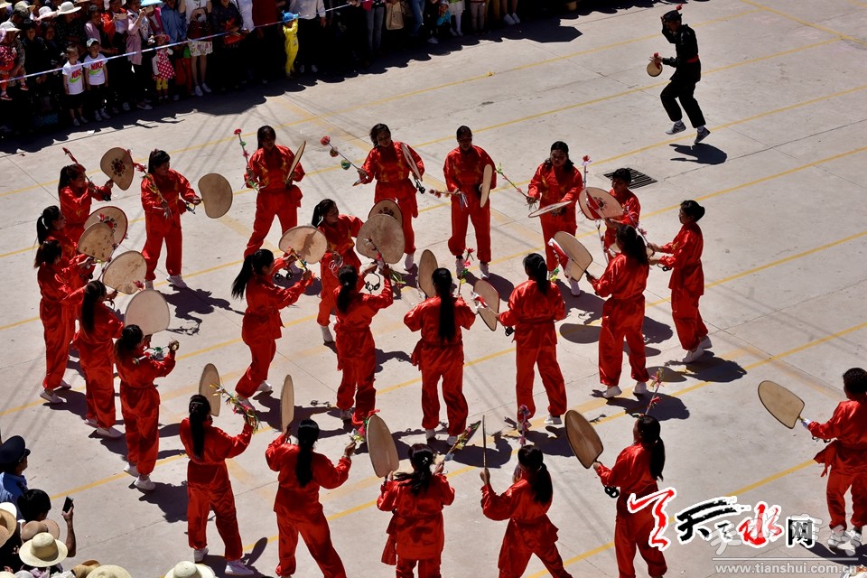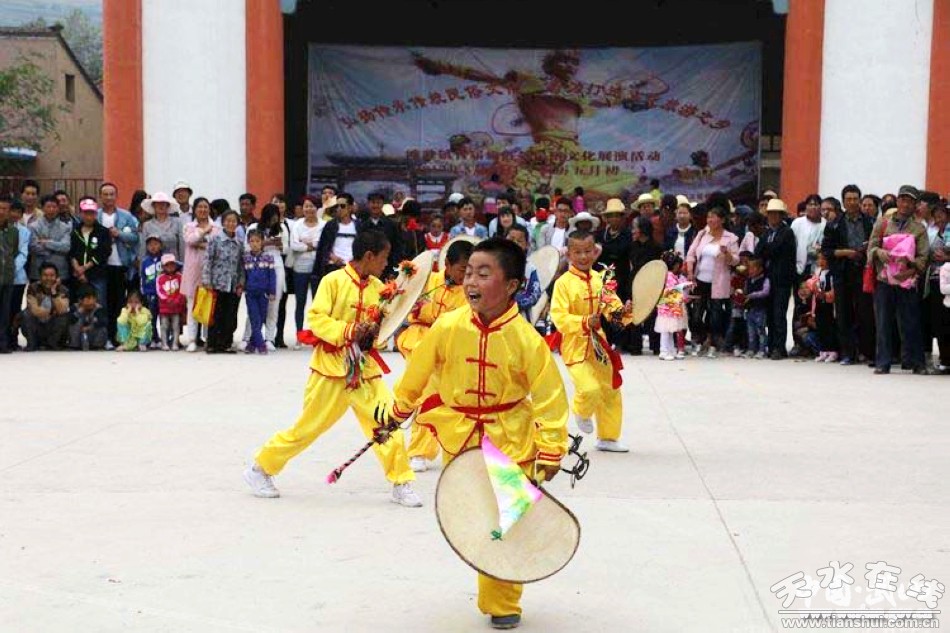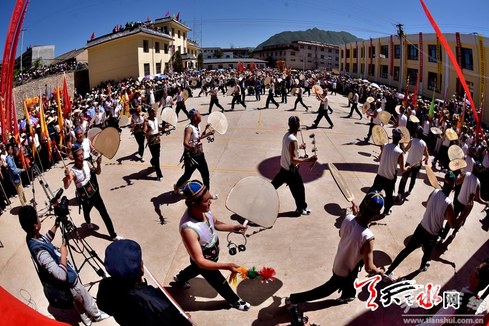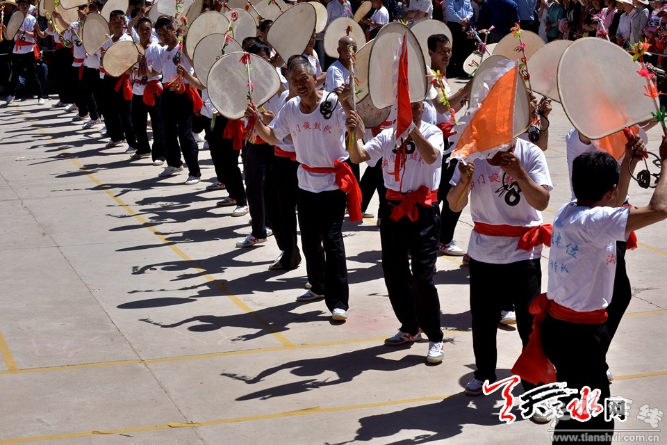 旋鼓源自古羌人的舞蹈,风格粗犷豪放,剽悍威武,浑厚雄壮,气势磅礴,流畅飘逸。刚劲激烈如老虎抖毛,潇洒大方如雄鹰展翅,舞姿灵动优美,感情奔放热烈,成为人们大型庆典、节日活动和自娱自乐的传统节目。在武山,特别是滩歌镇,洛门镇和龙台乡等地,有句谚语说:“小到刚会走,大到九十九,都会打扇鼓。”每年,从起鼓、高潮到收鼓,持续月余。先由儿童在各村敲起,自打自乐;后随端午临近,高潮渐次迭起,鼓队出村对打;每年五月初一到端午,发展到高潮,规模宏大的鼓队,集结赛鼓联欢,表达对生活的热爱和赞美之情。