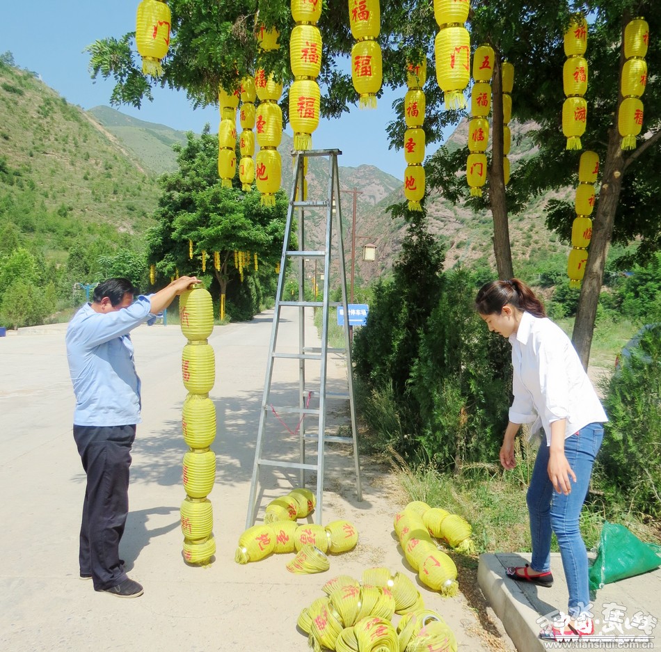 近日,景区上下一派繁忙,所有人员忙而不乱,筹备工作有条不紊,稳步进行。尤其在氛围营造这一块,水帘洞景区负责人带领全局工作人员绑许愿带,挂祈福牌,布阵旗,挂灯笼,让整个景区到处飘动着福的元素。