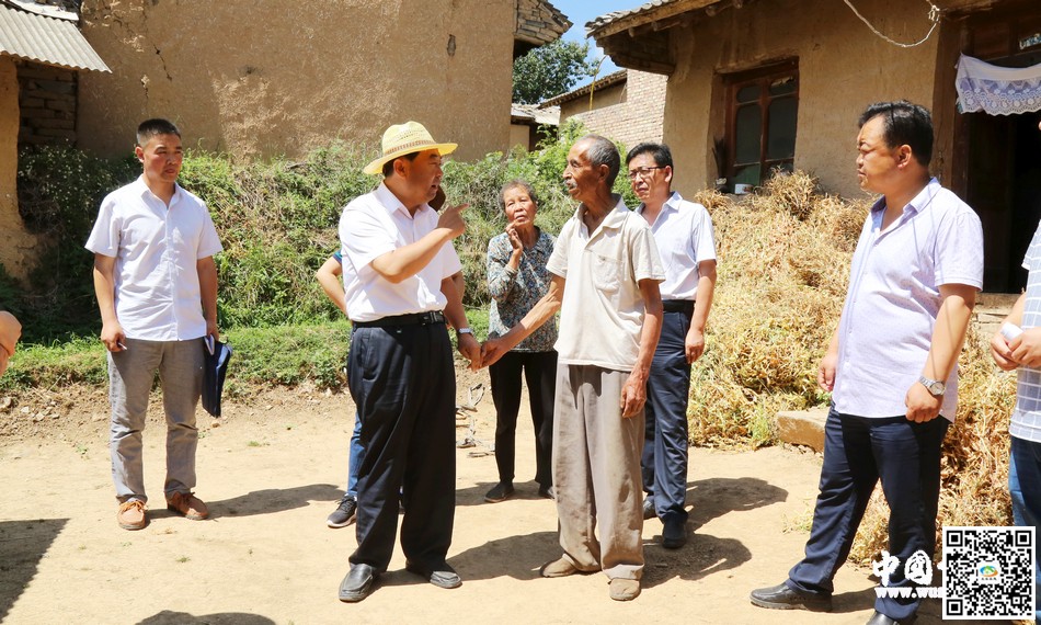在西山村,索鸿宾认真听取了全村脱贫攻坚工作情况汇报,详细了解了村容村貌整治、村卫生室和互助社运行及西山小学教学楼建设进展等情况。他强调,镇村两级和相关部门要全力抓好村内环境卫生整治,进一步完善机制体制,着力打造美丽乡村。要全力做好群众思想工作,及时拆除年久失修、无人居住的危旧房和墙体,加快危房改造建设进度,让贫困户都能住上安全的房子。相关安全监管单位要高度重视工程安全监督管理工作,确保在建工程质量可靠、施工安全可控。要充分发挥帮扶单位职能作用,切实解决好群众最关心最直接最急需的现实问题,共同努力帮助贫困村尽快改变面貌。78岁的老人陈福祥是全村最典型的贫困户,老两口年事已高,儿子常年患病,缺乏劳动力,全家三口人靠每月的低保费用维持生活。索鸿宾紧紧握住老人的手,询问老人的身体状况和生活困难,现场与镇村干部商讨安全住房解决对策,同时鼓励他树立生活信心,希望他在党和政府的帮助下早日走出困境,过上更好的生活。