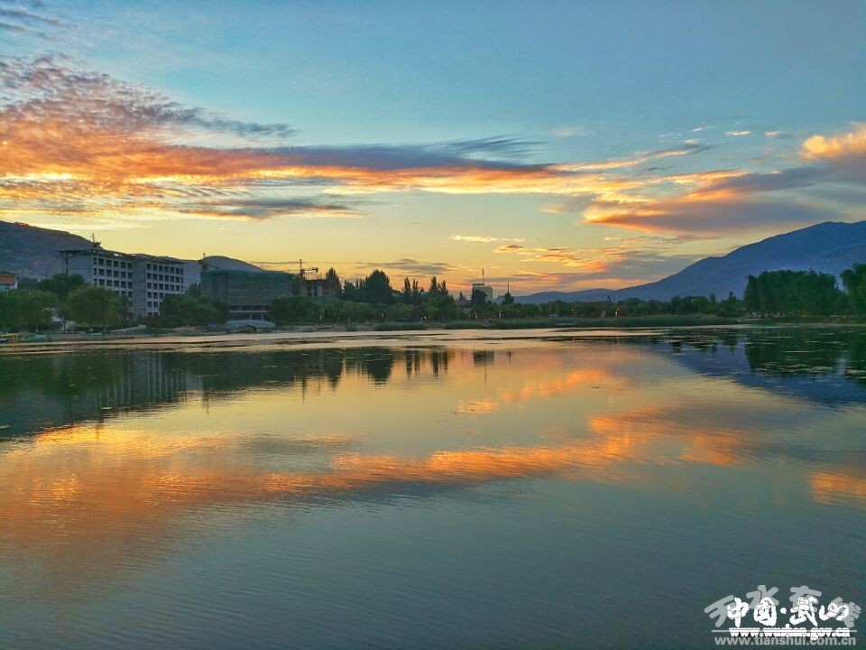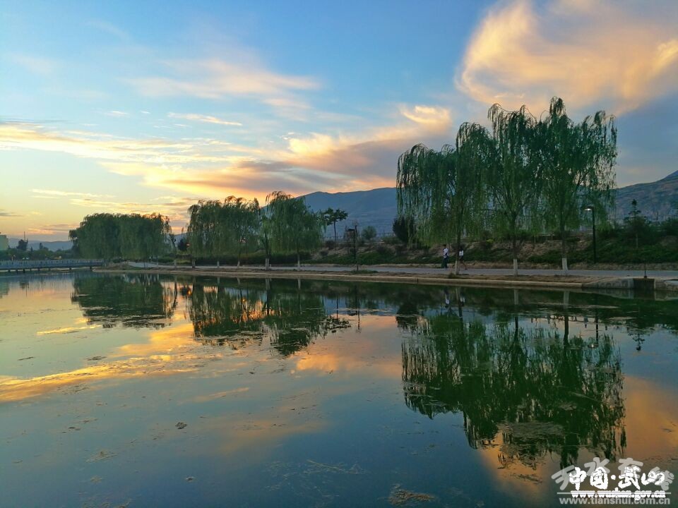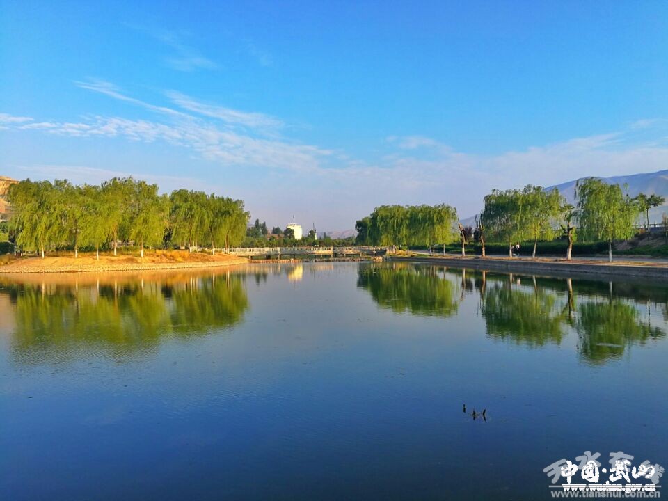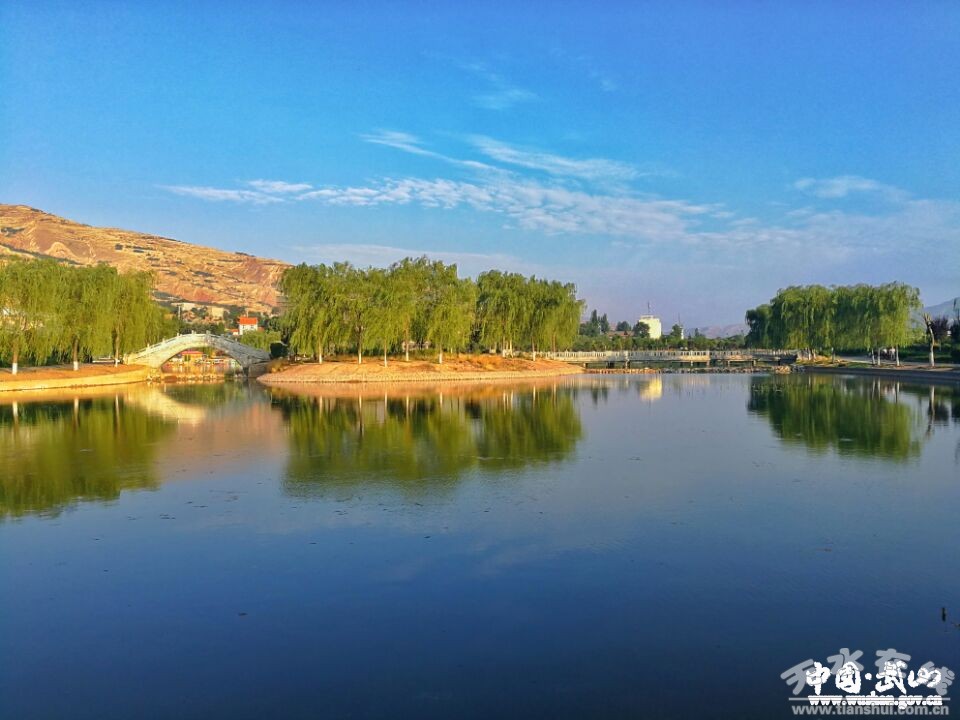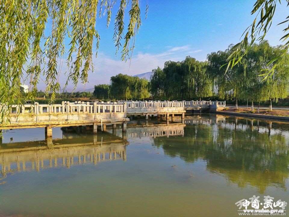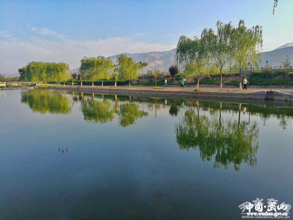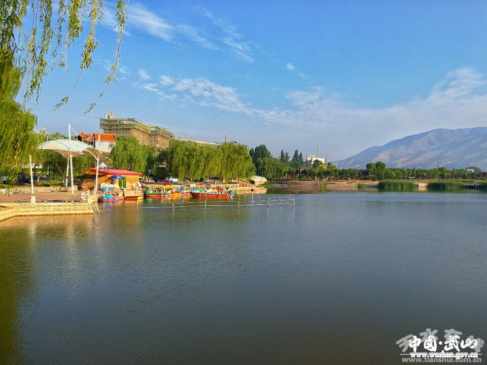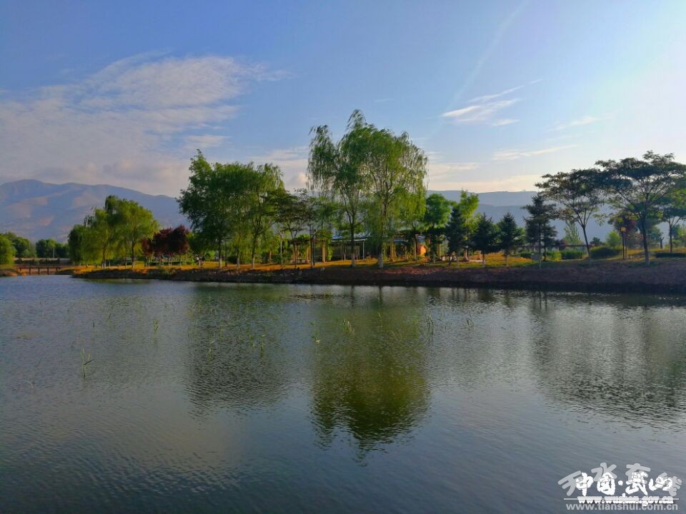 鸳鸯湖是县城唯一的一处水上公园。官方叫宁远生态园,民间称鸳鸯湖公园,或者鸳鸯湖。不管你是坐陇海线疾驰向东,还是经天馋高速向西穿行,都会在途径武山县城的渭水河畔,发现一块波光粼粼的水草公园。虽然面积不大,却是县上近年着力实施的一项民生工程。今年又因地制宜进行了提升改造,成了县城居民早晚散步,孩子老人寻乐健身的好去处。