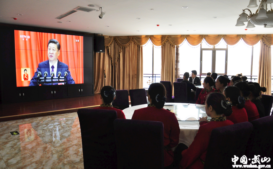 (洛门大酒店员工收看党的十九大开幕会实况)