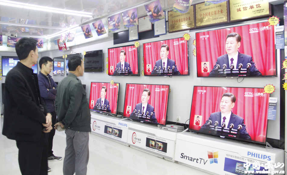 (武山县苏美电器销售部员工和顾客收看党的十九大开幕会盛况) |