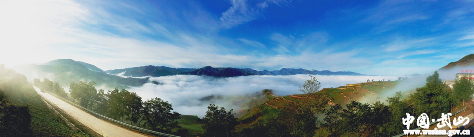 当你置身云端,看云层舒卷,如惊涛拍岸卷起千堆雪,波起峰涌、浪花飞溅,弥漫山峦之间,在翻滚奔腾的云雾掩映之下,四周错落有致连绵不断的群山都仿佛成为玲珑点缀,壮观的场面甚是吸引人们的眼光,让人感觉神思飞越,置身仙境。