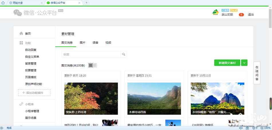 武山文物旅游官方网站的开通,将再次提升武山特色旅游资源和旅游资讯的对外展示力度,有效促进县域旅游经济的快速增长。为适应大众上网习惯,同时开通微官网(移动端)与公众平台无缝链接,旅游微官网的正式开通加强了武山旅游文化品牌宣传,推介武山丰富的旅游文化资源,是对外展示的良好窗口,也为游客更全面的了解武山提供了便捷通道。 |