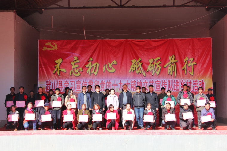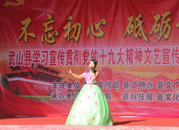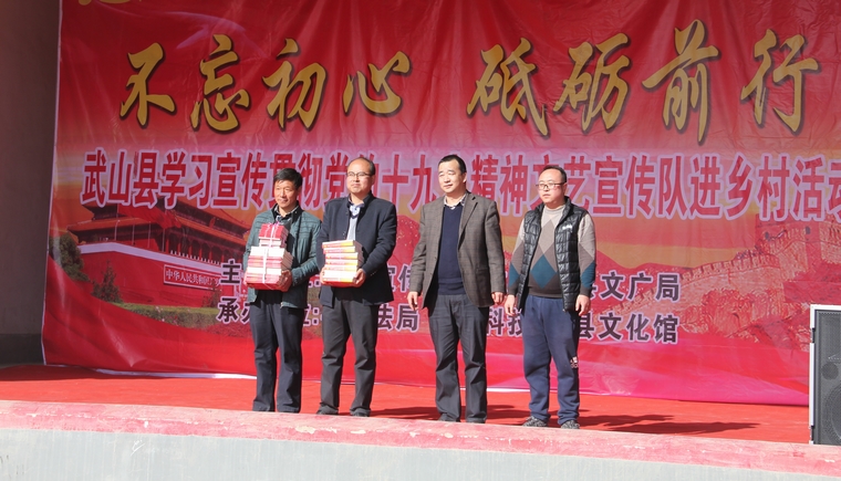 歌唱新时代不忘初心开启新征程,共圆中国梦牢记使命再创新辉煌。11月10日,武山县榆盘镇榆盘村广场人头攒动,热闹非凡,武山县学习宣传贯彻党的十九大精神文艺宣传队进乡村活动在这里拉开序幕。县委常委、宣传部长李菊霞,县人大常委会副主任谢勇以及县委宣传部、县文广局、县司法局、县科技局、榆盘镇负责人参加活动。