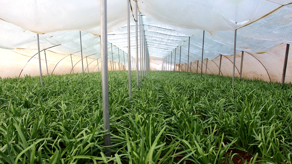 今年的三九天算是最近几年最冷的了,零下十几度的气温使得再明媚的天也凸显不出太阳的温度,但是在大棚里,却因为太阳的照射显出一点点的湿热,这正是韭菜生长所喜欢的环境。阳光的折射下,一窝窝韭菜株丛健壮、茎叶宽厚,正值收获的好时候。