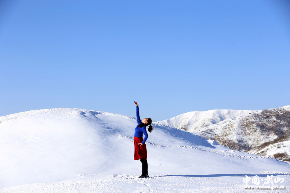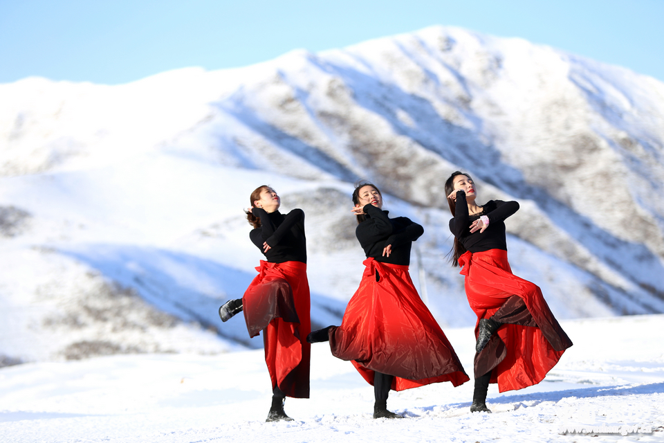 好景色还需要人气烘托,才有灵气和活力。身着红衣在雪地里翩翩起舞的雪原仙女们突然从天而降,舞起一段段惊艳绝决的舞蹈,瞬间激活了这万里雪原的热血。一静一动间,给冬日的草川草原平添一份无与伦比的神奇魅力。(图/爱武山网何海瑞 赵亮亮)
