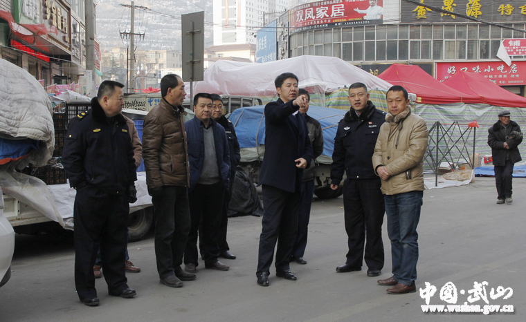 为了进一步规范城市管理,优化城市环境,提升城市整体形象,确保全县人民在整洁优美的环境中度过一个喜庆、祥和的节日。2月8日,武山县副县长李顺发带领县建设、执法、工商、食药监、交警、市场中心、环保等部门负责人,深入城区主干道、渭北综合市场等地,督查春节前城区环境秩序集中整治工作。