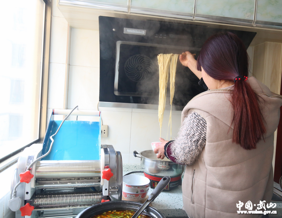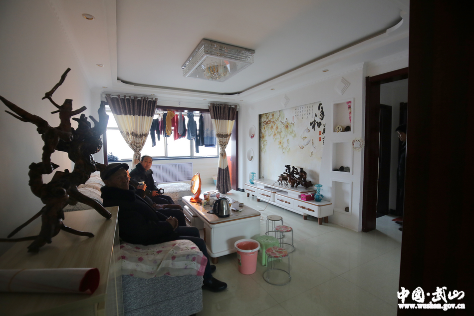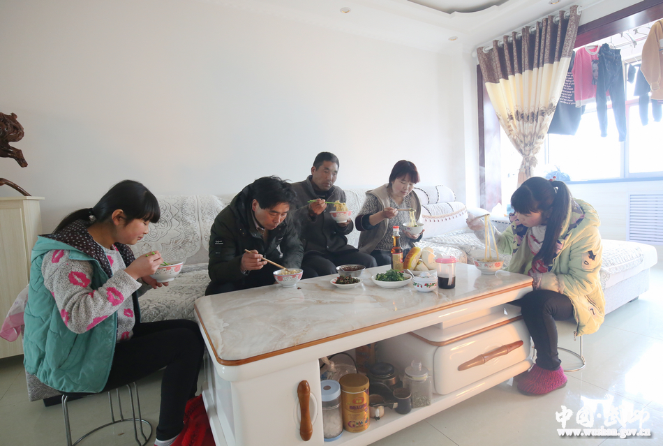 客厅里,来串门的邻居和走访的乡镇干部坐在沙发上说闲话、拉家常;卧室里,赵世堂的大女儿正趴在书桌上写寒假作业,头顶的书架上摆满了各种各样的作业和书籍,两张荣誉证书尤为耀眼;卫生间,洗衣机、热水器一应俱全;厨房里,压面机、油烟机奏出和谐乐曲,燃煤供暖炉上正放着热气腾腾的臊子面汤,各色年货吃食整整齐齐码在厨房一角,而赵世堂的妻子正在和小女儿一起准备午餐。俨然一副小康之家的模样……