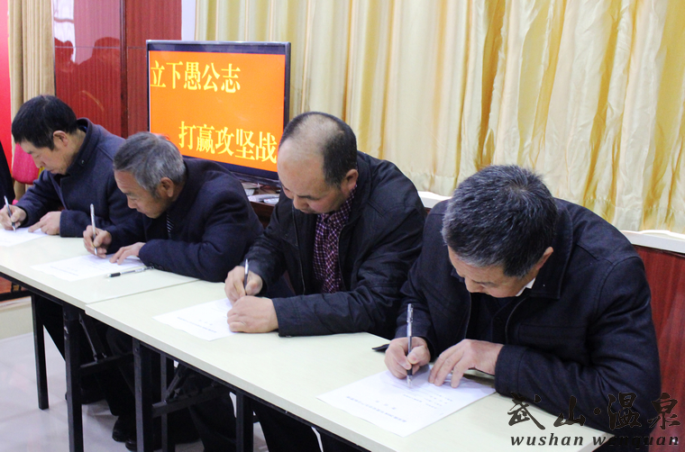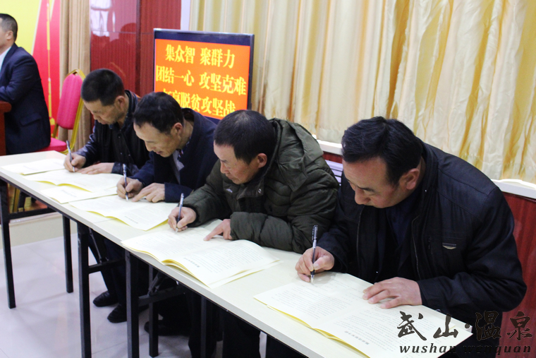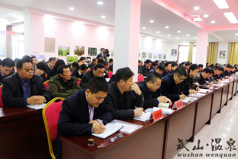 会上,传达学习了习近平总书记在打好精准脱贫攻坚战座谈会上的讲话精神,中央农村工作会议、全国扶贫开发工作会议和省、市、县委农村工作暨扶贫开发工作会议精神;观看了全县2017年脱贫攻坚专题片; 镇人大主席包昱宣读了《中共温泉镇委员会、温泉镇人民政府关于表彰奖励2017年度工作先进集体和先进个人的决定》;各村党支部书记签订了脱贫攻坚军令状及目标管理责任书;镇党委书记王喜来就全镇2018年工作进行了全面部署,镇党委副书记、镇长成小胜就当前重点工作进行了安排。
