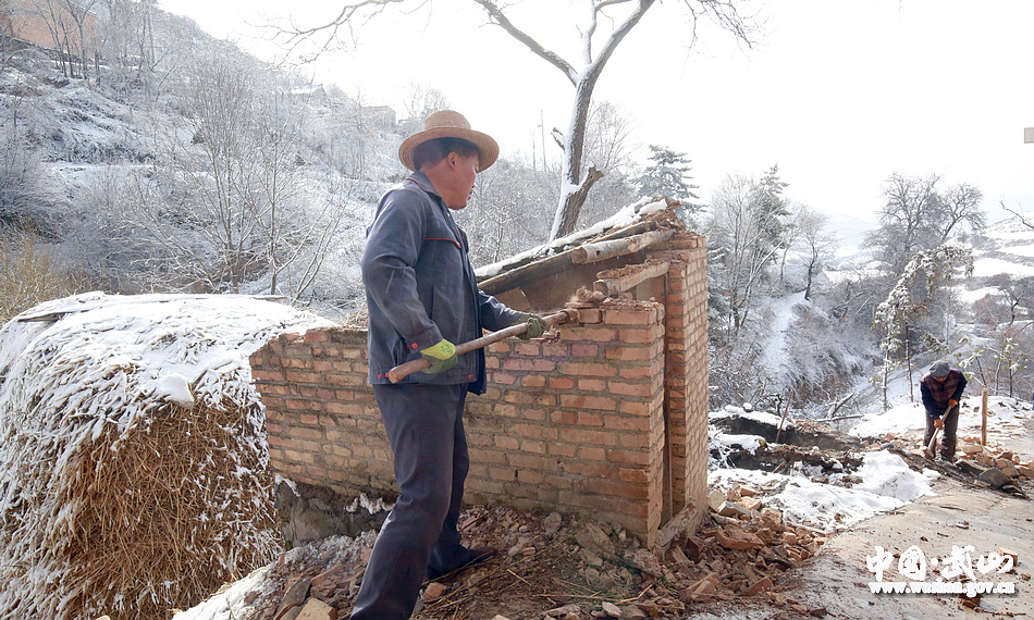 还未进村,便看见通村路边,许多人拿着铁锹、锄镐挖挖铲铲,很快路边薄薄积雪就被挖出来的土覆盖了。沿着村里的小路一路走来,三三两两的人家,都在拆挖自家的破烂旧房、收拾堆放的柴草垃圾等等。看见我们一行人,就停下手里的活儿,热情的邀请我们去喝茶。