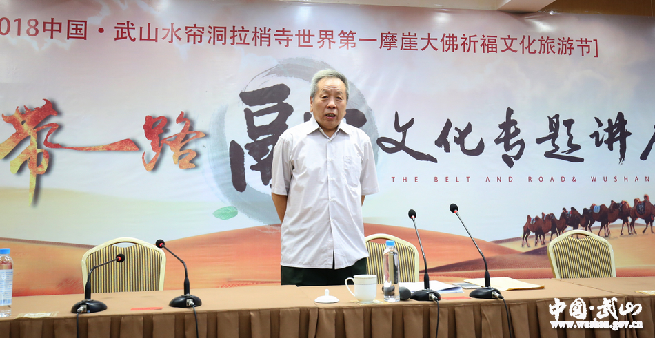 “昨天,我参加了咱们水帘洞拉梢寺世界第一摩崖大佛祈福文化旅游节,又观看了众多民间祈福文化节目展演,和相关人士进行了交流探讨,对武山的福文化特别是祈福文化感慨颇深。……祈福或求福文化,是福文化的重要组成部分,其中还包括,祝福、纳福、觉福、惜福、续福,等类的文化,可将其统称为融福文化……”6月24日,在2018中国·武山水帘洞拉梢寺世界第一摩崖大佛祈福文化旅游节之际,魏同悟“一带一路”融文化专题讲座在武山成功举办。县委常委、副县长何敬忠出席讲座并致辞,县委常委、统战部长孙德银主持专题讲座。