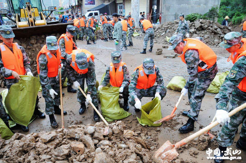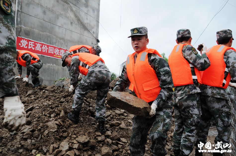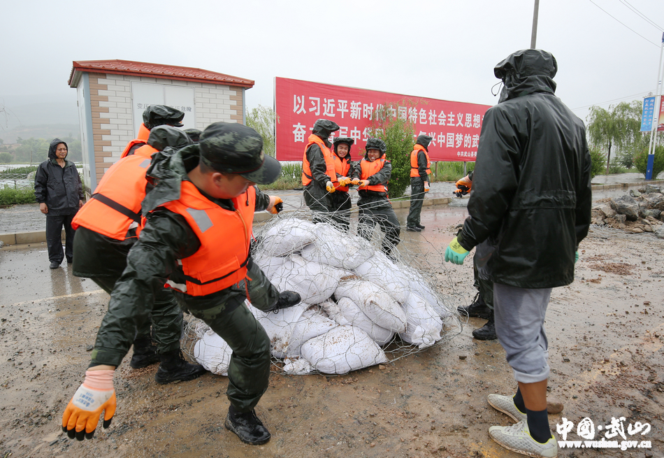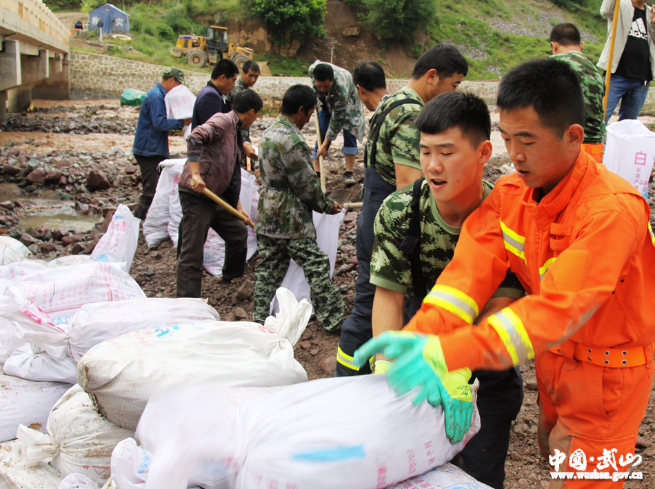 7月1日18时至7月2日10时,武山县出现强降雨天气过程,局部最大降水达124.4mm,加之上游下泄洪水剧增,县内渭河及其支流出现50年未遇特大洪水,造成全县15个乡镇不同程度受灾。暴洪灾害发生后,广大官兵火速驰援一线抢险救灾,灾情现场官兵们充分发扬不怕疲劳、不畏艰险、连续作战的顽强作风,发挥了主力军和突击队的作用,承担了大量急难险重任务,积极抢修水毁道路桥梁、河堤、公路等基础设施,有效遏制了灾情继续扩大,在抢险救灾中做出了积极贡献,保护了人民群众生命财产安全。