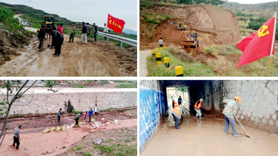 三是上下迅速反应,全力以赴开展抗洪抢险救灾。汛情就是命令,险境就是战场。坚持把抗洪抢险救灾作为当前最重要、最紧迫的任务,牢固树立全县“一盘棋”的思想,时刻把保障人民群众生命安全放在首位,迅速进入“战时”状态,上下一心,快速反应,积极深入灾情一线开展抢险救灾工作。县四大组织主要领导以上率下、靠前指挥,深入一线分片督促指导抢险救灾,成为灾区群众抗洪抢险救灾的“主心骨”。各乡镇、村成立了抗灾救灾应急分队,对受灾情况进行造册登记,对受损严重无法安全使用的围墙、危旧房采取果断措施,动员群众尽快撤离,及时进行拆除,帮助群众转运财物,彻底排除安全隐患。各乡镇组织乡村干部群众3万多名,积极抢险自救。县交通、水务、供水、供电、通讯等部门迅速行动,及时组织应急抢险人员,调运挖掘机、装载机等300多台机械设备,突击抢修道路、供水、供电、通讯等设施。特别是人民子弟兵冲锋在第一线,全县驻武部队、武警、消防官兵、公安干警派出300多人,迅速集结、挺进灾区,用热血和汗水筑起了一座座冲不垮的堡垒。各驻村帮扶工作队等救援力量积极投身到抢险救灾工作中,装填、搬运沙袋,转移受灾群众,清除街道淤泥。通过全县上下齐心协力、连续奋战,县内主要交通干道和大部分堵塞路段已全部抢通,大部分供水、供电、通讯设施恢复正常。