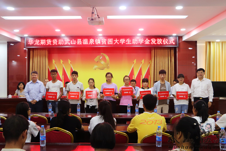 为进一步贯彻落实习近平总书记对扶贫工作的重要指示要求和中国证监会“一司一县”结对帮扶政策,切实履行社会责任,8月24日,华龙期货股份有限公司2018年爱心助学活动在温泉镇举行,对2018年考入大学本科二本以上的15名贫困大学生进行资助。