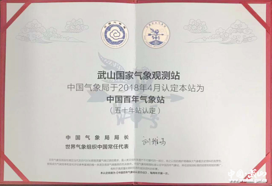 近日,武山国家气象观测站被中国气象局认定为“中国百年气象站”。