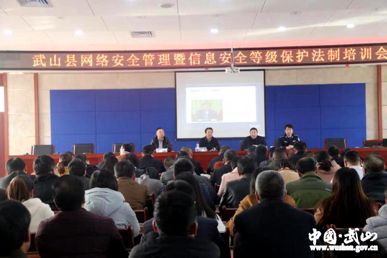 11月29日,武山县召开网络安全管理专题培训会,各乡镇、县直各部门网络安全员及县内各网站、新媒体管理人员参加培训会。县委常委、统战部部长孙德银出席会议并讲话。北京天融信科技集团网络安全总监乔国栋对《网络安全法》作深入解读,并就防范网络安全风险及信息安全等级保护等方面内容进行专题培训。