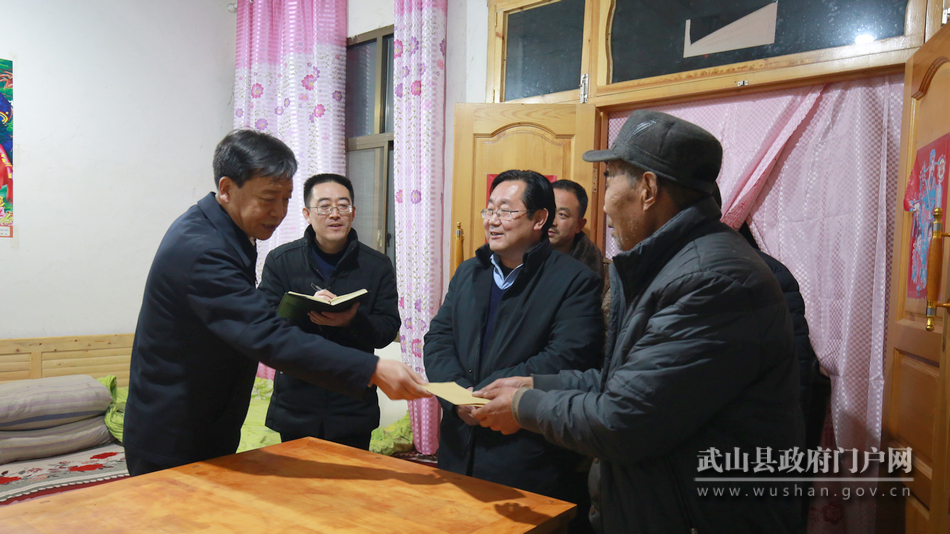 1月18日,武山县委副书记、县长马勤学深入桦林镇陈咀村和鸳鸯镇包坪、丁门村,走访慰问村两委班子成员、困难群众,向大家送去了新春的祝福和问候,并和大家一起对明年脱贫攻坚各项工作进行详细谋划。