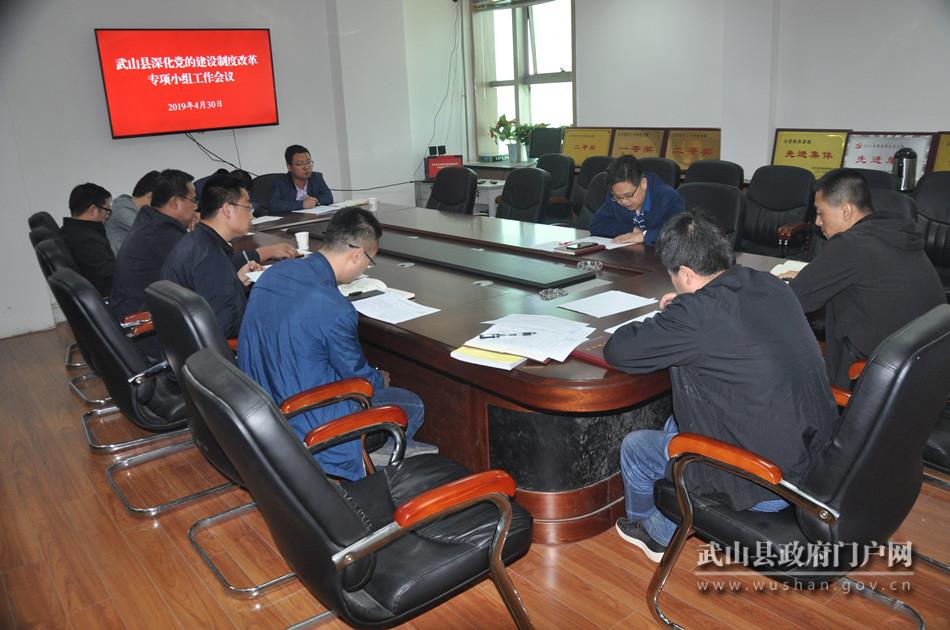 4月30日,按照武山县委常委、组织部长、党的建设制度改革专项小组组长高朝峰同志安排,县委全面深化改革委员会党的建设制度改革专项小组召开全体会议。会议传达学习了中央和省、市委全面深化改革委员会有关会议精神,对2019年深化党的建设制度改革各项举措逐项逐条进行了讨论梳理,并对今年各项工作进行了研究部署。