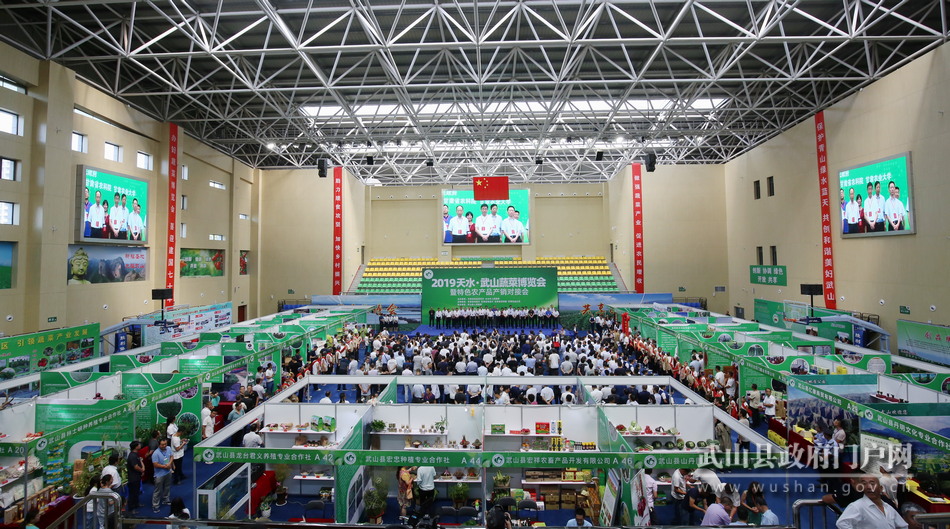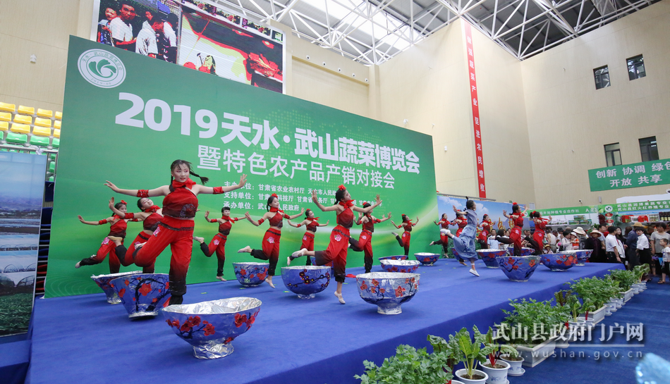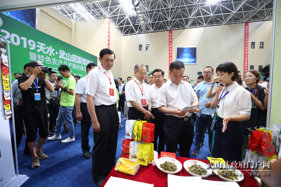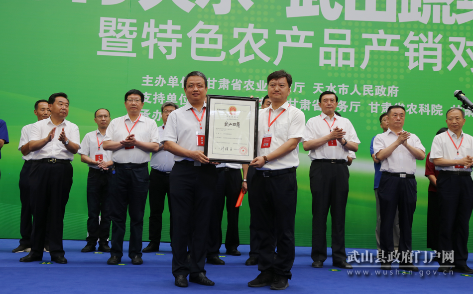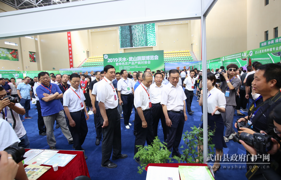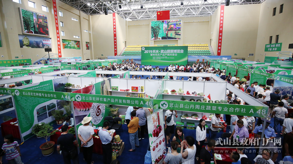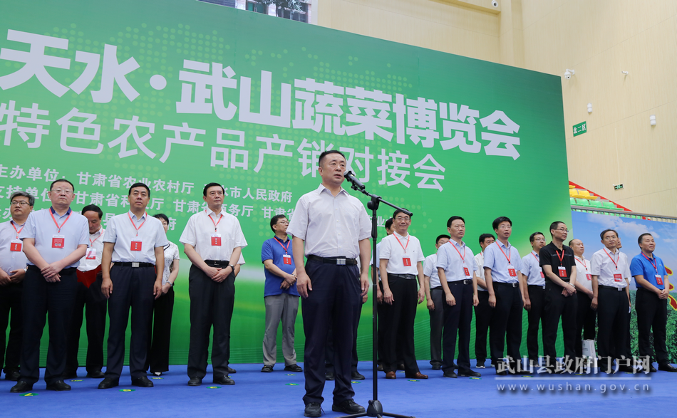 天水市人大常委会主任蒋晓强宣布2019天水·武山蔬菜博览会暨特色农产品产销对接会开幕;甘肃省农业农村厅党组成员杨祁峰、天水市委副书记赵卫东分别讲话;天水市政协副主席、武山县委书记索鸿宾致辞;武山县委副书记、县长马勤学主持开幕式;甘肃省市场监督管理局标准化处副处长张晓峰颁发“武山豆角”国家地理标志证明商标;甘肃省农业农村厅市场与信息化处处长武宏安颁发“武山莴笋”“武山辣椒”“武山油白菜”绿色食品A级产品证书;武山县委、县政府表彰了对全县蔬菜产业发展作出贡献的先进集体和先进个人。