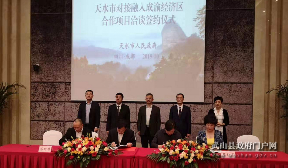 10月17日,天水市在成都召开了天水市对接融入成渝经济区合作项目洽谈签约会。会上,县委副书记、县长马勤学与重庆金地燃气集团董事长郑刚,就农业采摘观光基地及冷链物配送等合作项目进行了签约。双方表示将以此次签约为契机,深化细化推进措施,共同抓好各项前期工作,全力以赴跟进落实,力争项目早日落地建设。