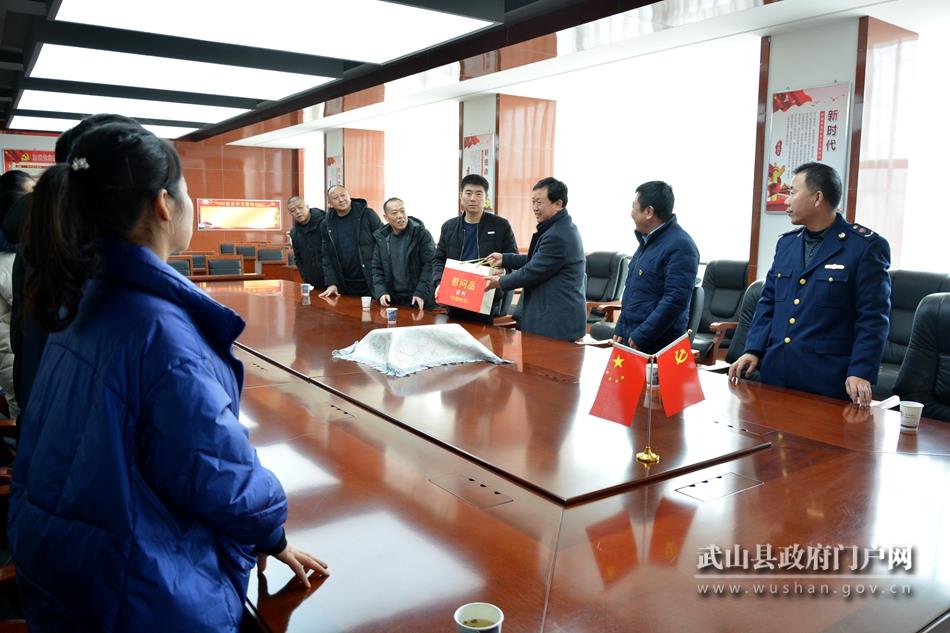 春节临近,为了让非公有制经济组织困难党员、老党员、优秀党务工作者和优秀企业经营管理人才过上一个欢乐祥和的新春佳节,连日来,武山县委常委、组织部部长张育明等县上领导和县市场监管局党组书记、局长王立明,县市场监管局党组成员、非公有制经济组织和社会组织党工委副书记、非公有制经济组织党委书记王军红等一行深入绿源国际贸易公司、森源蔬菜果品市场公司、天宝塑业公司、禾玉农业开发公司、红兴旺牧业公司、第四建筑公司、周岭砼构件预制公司、恒康混凝土公司、斐拓农业发展公司、大美影视传媒公司、通济牧业公司等非公企业党组织,走访慰问困难党员、老党员、优秀党务工作者和优秀企业经营管理人才,向他们送去了党的关怀和温暖,并致以新春的问候和祝福。