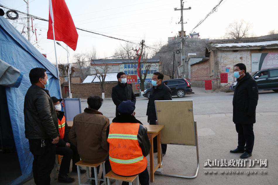 310国道是进入武山的重要通道,在与陇西县接壤的桦林镇牛庄村设置了疫情防控检测点、劝导站、留观室,索鸿宾现场查看疫情防控各项措施落实情况,看望了坚守岗位的一线工作人员,叮嘱防控工作人员要增强防范意识,做好自身安全防护。索鸿宾强调,外来车辆和人员检测摸排是疫情防控的第一道防线,要坚持不懈,从严从细从实做好检测、登记、消毒、管控等工作,严防死守,确保不漏一车、不漏一人,坚决阻断病毒输入。要加强工作力量,合理排班轮换,配齐口罩、防护服、体温监测仪、护目镜等防护物资和消杀药品,全力保障防寒和基本生活,切实把牢武山的西大门。要强化统一指挥调度,统筹做好数据上报和表格填写等工作,切实减轻基层负担,确保乡镇集中精力抓好疫情防控工作。