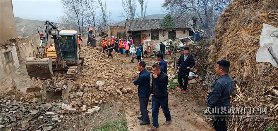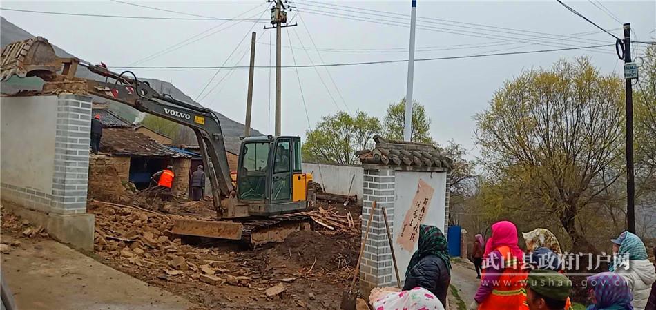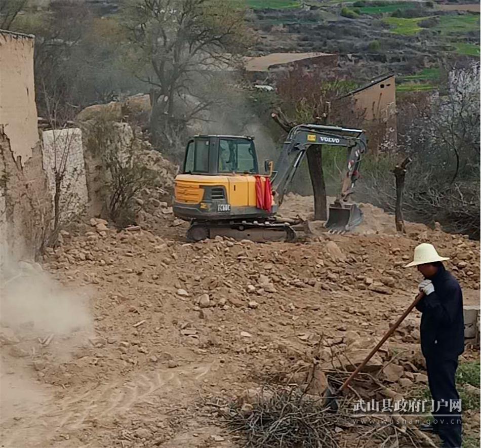 在山丹镇崔山村,村党支部书记崔茂同正在指挥挖掘机进行塌房烂院和危旧墙体的拆除工作,这已经是村上拆除的第20处危旧墙体,拆除后,村两委将按照村民意愿有选择的进行复耕、复种或统一规划修补建设。