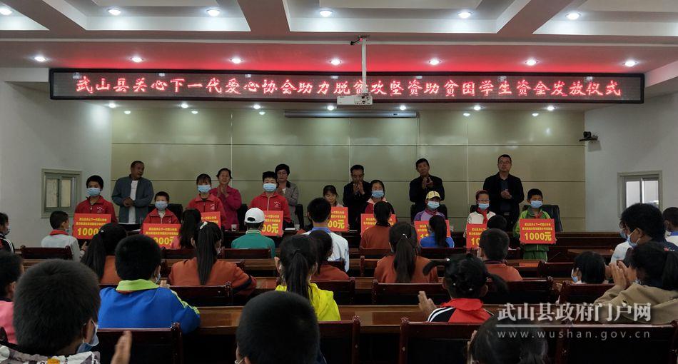 武山县关心下一代爱心协会自2015年成立以来,社会各界和有关企业共捐助善款68.7万元,累计资助优秀贫困学生400多名,发放资助金40.1万元,及时解决了他们的后顾之忧,全力帮助他们顺利完成学业。