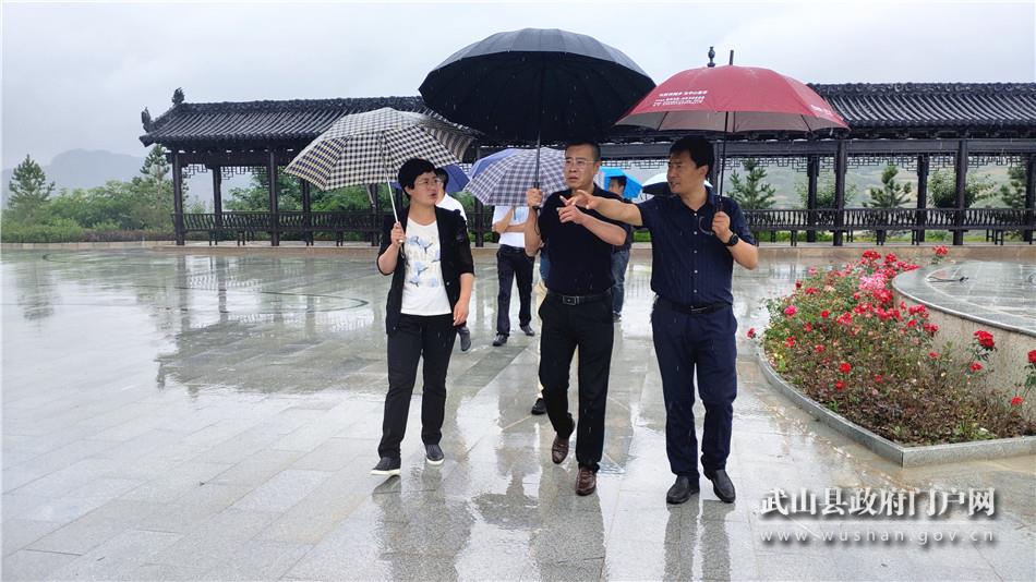 武山县融媒体中心8月5日讯(实习生 马晶晶)8月4日,甘肃建投六建集团董事长殷同春一行,就武山县水帘洞鲁班山大景区基础设施建设项目进行考察。副县长高春霞参加考察。