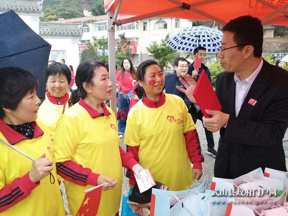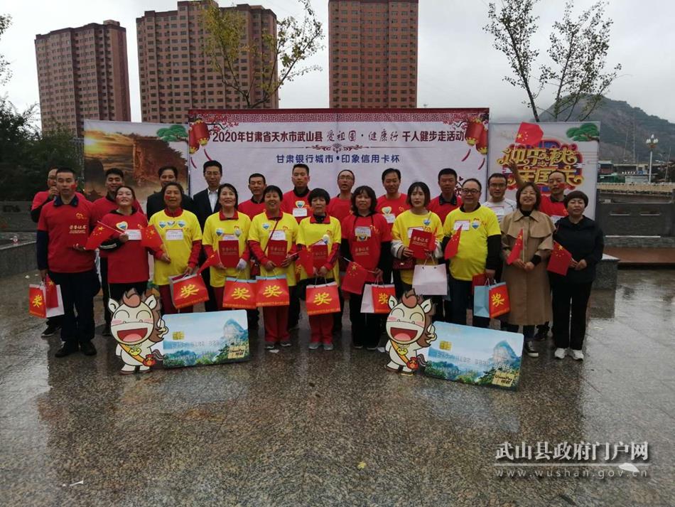 武山县融媒体中心9月30日讯(记者 李丽琼 管秋勇 郭韵 马国栋)迎中秋、庆国庆。为深入推进脱贫攻坚,实施乡村振兴战略,大力弘扬伟大抗疫精神,传播中国正能量,同时积极响应党中央全民健身号召,倡导全民健身,以更加健康向上、更加奋发有为的精神状态,奋力谱写高质量高发展的中国梦,9月30日,武山县举办“喜迎‘双节’健步走 不忘初心快乐行”活动。