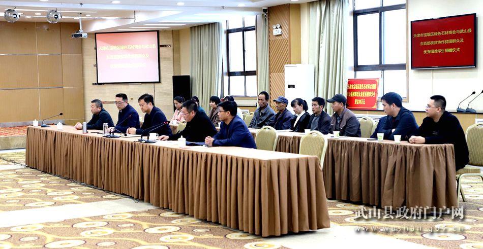 武山县融媒体中心10月23日讯(记者 包玉霞)10月22日,天津市宝坻区绿色石材商会与武山县东西部扶贫协作困难群众及优秀困难学生捐赠仪式在武山县文体中心举行。仪式现场双方先后签订了《捐赠协议》、举行了捐赠仪式、县扶贫办代表受捐赠困难户作了发言,并向天津市宝坻区绿色石材商会敬赠锦旗。