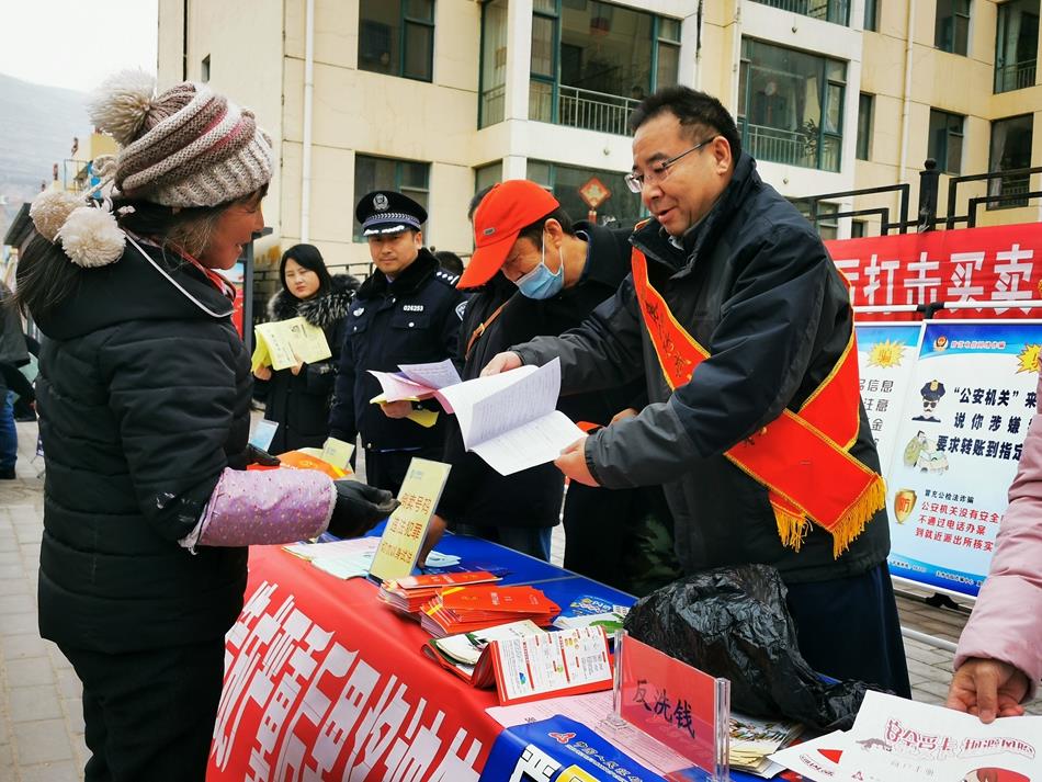 武山县融媒体中心11月30日讯(记者 杨彦春)为进一步提高群众防范电信网络诈骗违法犯罪意识,有效遏制电信网络新型违法犯罪案件高发势态,最大限度减少群众的经济损失,切实保障人民群众的财产安全,11月27日,武山县公安局、司法局、中国工商银行武山支行、中国农业银行武山支行、武山信用联社、中国人民银行天水市中心支行、中国移动、中国电信、中国联通等多家单位联合开展防范电信、网络诈骗宣传活动。