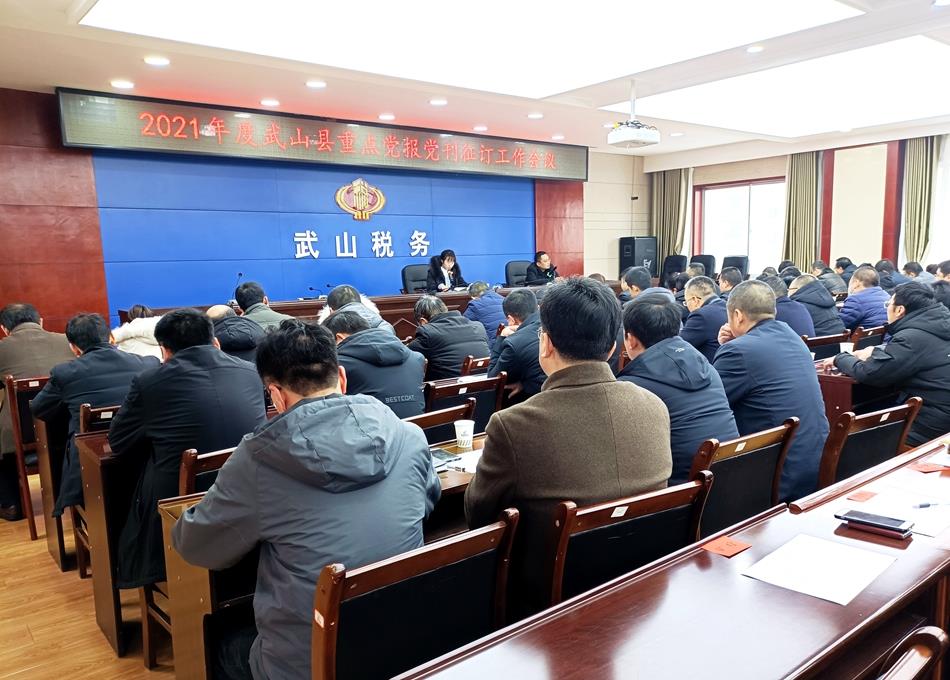武山县融媒体中心12月15日讯(记者 郭韵)12月14日,武山县召开2021年度重点党报党刊征订工作会议,贯彻落实中央和省、市委关于做好2021年度党报党刊发行工作、严格规范报刊发行秩序的有关精神,安排部署全县党报党刊征订工作。县委常委、宣传部部长胡丽霞出席会议讲话。