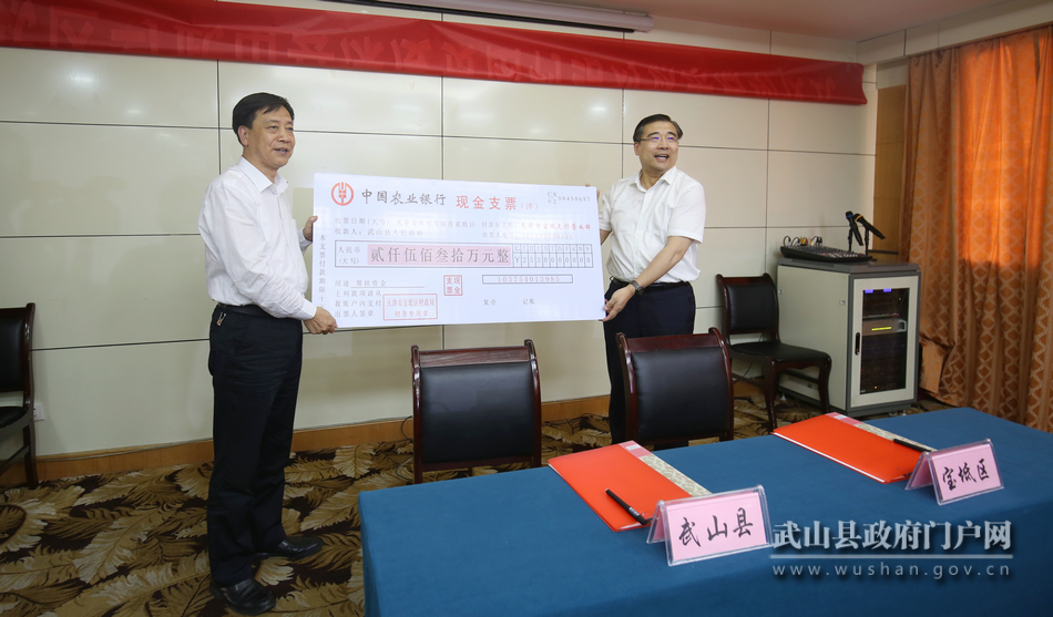 深化东西部扶贫协作,主动加强与天津宝坻区的帮扶协作,落实各类帮扶资金1.08亿元,实施了农村安全饮水、贫困村入户道路硬化、贫困户危房改造和居住环境改善等一大批基础设施建设项目。开展各类互访交流120多批次700多人,互派挂职干部和专业技术人才244人,双方8个乡镇(街道)和20多个部门建立帮扶关系,宝坻区100名领导干部和武山县100户贫困户“结对认亲”。东西协作以来,宝坻区社会各界向武山捐赠帮扶资金及物资1322万元。