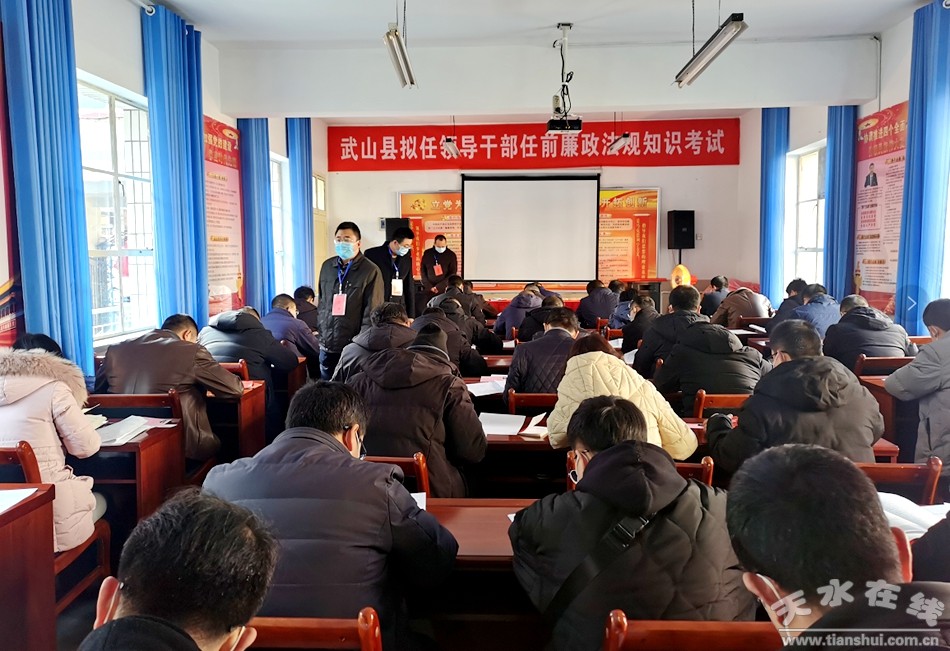 “请同志们将手机关机或调至静音状态,装入信封交工作人员,考试马上开始。”1月26日下午,武山县对新拟任领导干部进行廉政考试。县纪委监委监考人员向45名“考生”宣布考场纪律,参会人员严格落实疫情防控要求,全程佩戴口罩,现场气氛严肃安静。