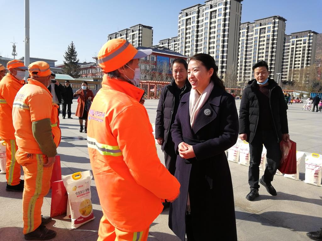 武山县融媒体中心2月4日讯(记者 李益)在新春佳节即将来临之际,2月3日,县委常委、副县长李菊霞到县人民广场看望慰问工作一线的环卫工人,与他们一一握手,对其付出的辛勤劳动表示衷心感谢,送上了节日慰问品和新春的祝福,并通过他们向全县广大环卫工作者及其家属致以节日的问候。