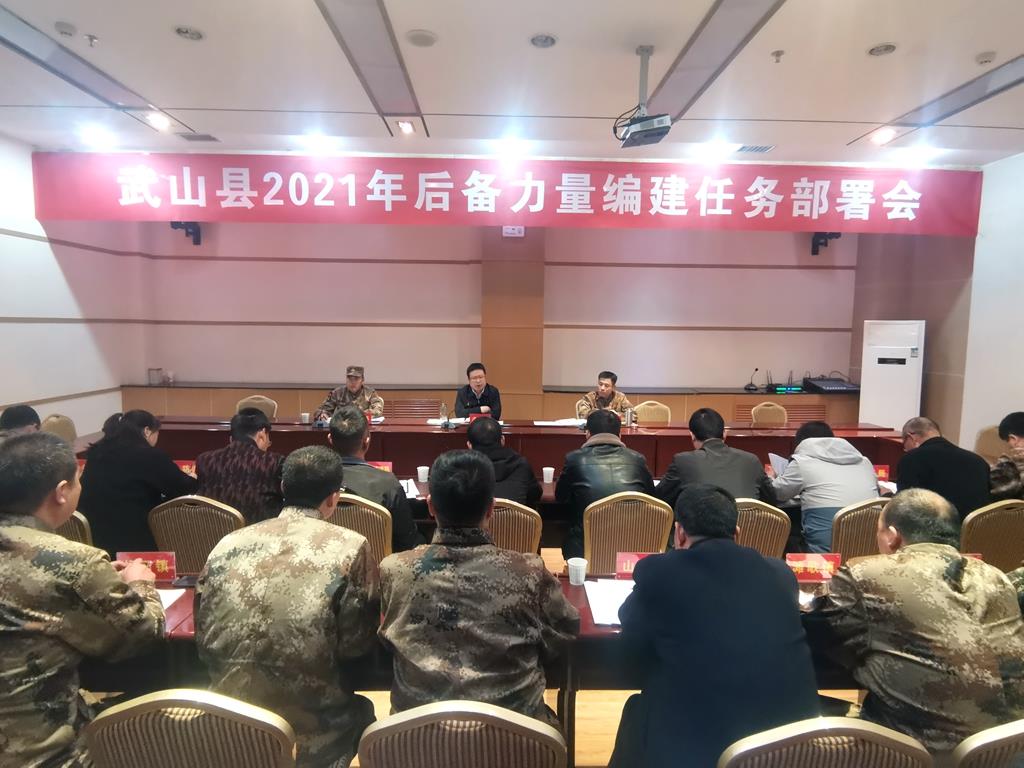 武山县融媒体中心4月9日讯(记者 包玉霞)4月9日,武山县召开2021年后备力量编建任务部署会,贯彻落实天水市后备力量编建任务对接会精神,安排部署今年后备力量各类队伍编建问题。