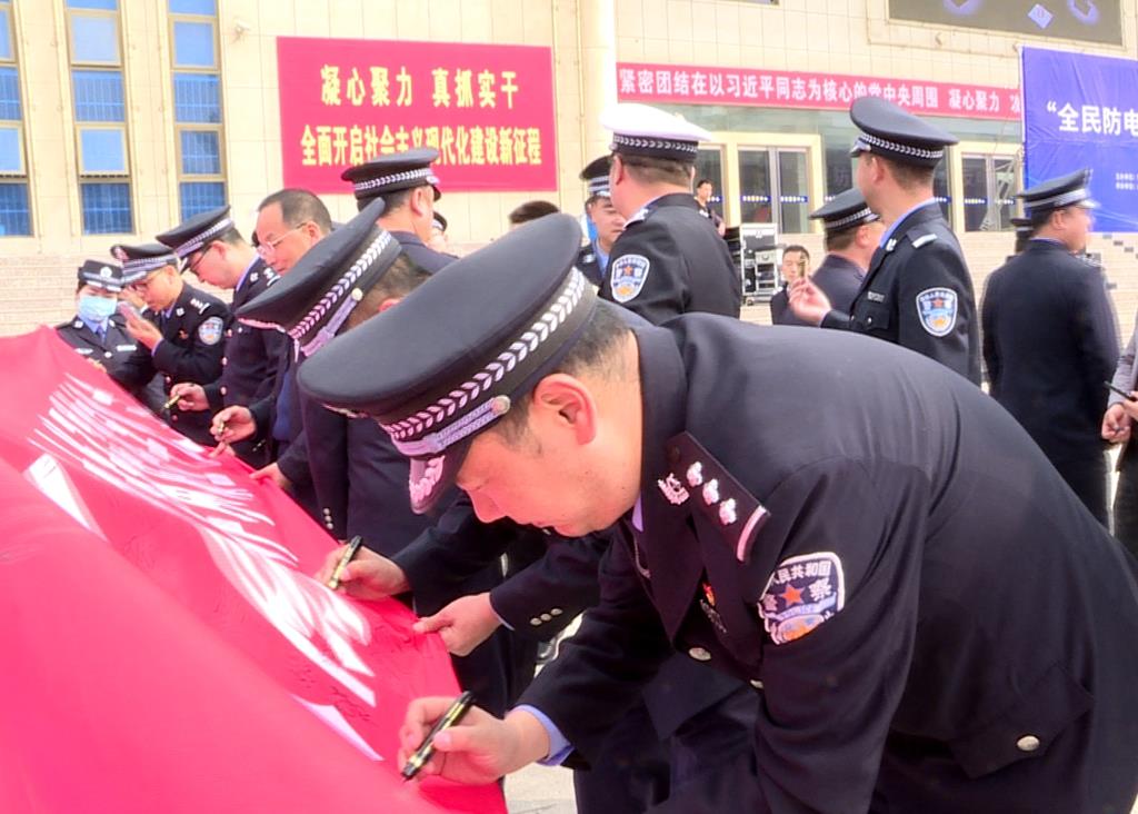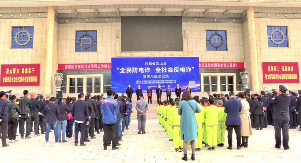 武山县融媒体中心4月21日讯(记者 王越)4月21日上午,武山县在文体中心广场举办了以“全民防电诈 全社会反电诈”为主题的宣传月活动启动仪式。副县长、县公安局党委书记、局长李森出席活动并讲话,县打击治理电信网络新型违法犯罪工作联席会议成员单位相关人员参加了启动仪式。