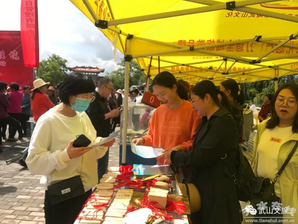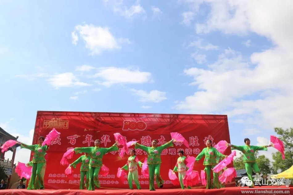 在木梯寺景区,由武山县文体广电和旅游局主办的“中国旅游日”主题宣传活动暨“庆百年华诞·游木梯胜境”木梯寺景区文化旅游观光活动开幕,此次活动紧紧围绕“绿色发展,美好生活”为主题,开展了一系列的惠民旅游措施和文明旅游宣传活动,非遗展演,文艺汇演,美食展销,书画创作,工作人员散发宣传册页,讲解文明旅游知识,现场答疑解惑,使文明旅游深入人心,进一步提高了大众文明旅游积极性,为创建文明新武山打下坚实的基础。