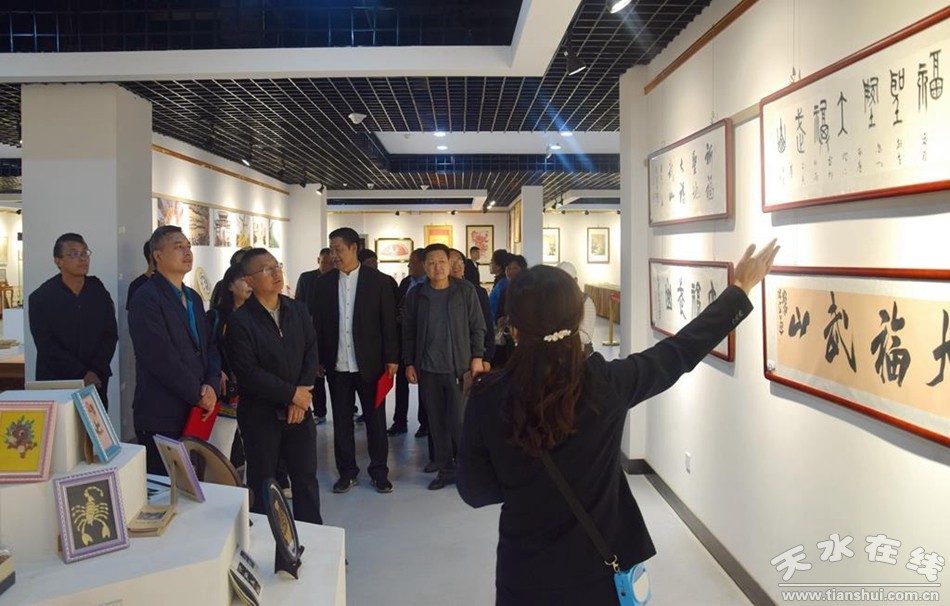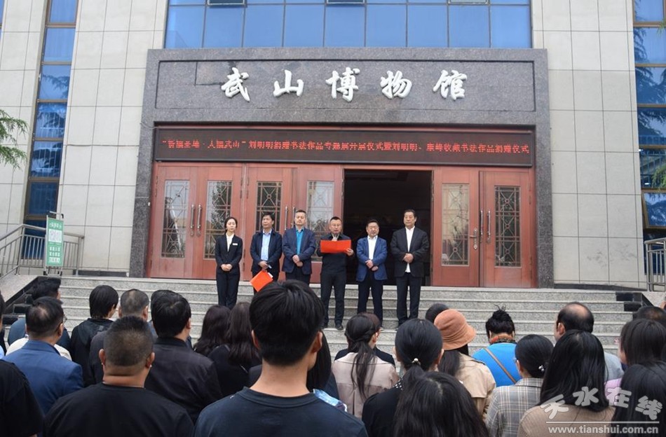 为迎接第四十五个“国际博物馆日”,弘扬中华优秀传统文化,展现书法艺术的无穷魅力,5月18日上午,“祈福圣地?大福武山”刘明明捐赠书法作品专题展暨刘明明、康峰收藏书法作品捐赠仪式在县博物馆举行。副县长金学民出席仪式并致辞,县政协副主席郭远,中国书法协会会员、展览书法作品捐赠人刘明明,中国书法协会会员、书法作品捐赠人康峰,县直相关部门和单位负责人,宁远书画院、县文旅系统干部职工,武山县书法爱好者共计100余人参加。