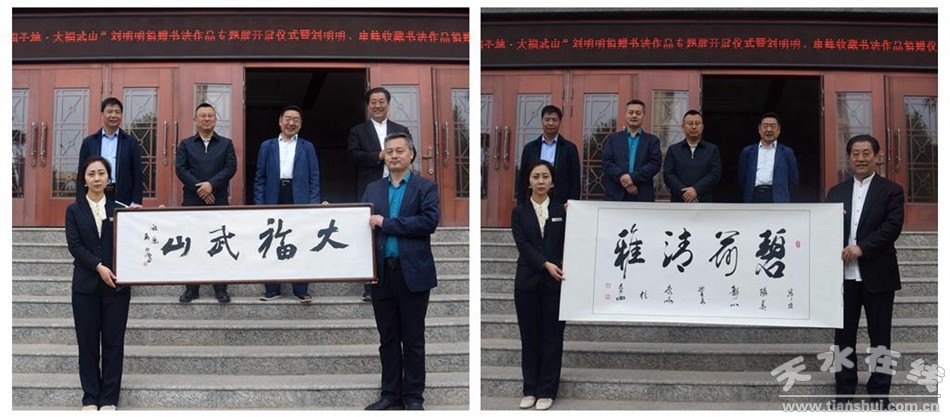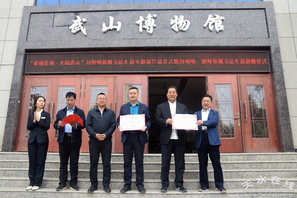 仪式上,县政府副县长金学民、县政协副主席郭远分别向捐赠者刘明明先生和康峰先生颁发捐赠证书。金学民在致辞中表示,“祈福圣地?大福武山”刘明明捐赠书法作品专题展既是武山县书法界的一件盛事,也是武山文化事业的一件大事。书法专题展的举办,既体现了艺术家们传承文化的艺术自觉,也为我们提供了一次学习鉴赏的机会,希望武山文艺界以此次展览为契机,扎根武山沃土,赓续厚重文化,推动全县文化事业创新繁荣发展。
