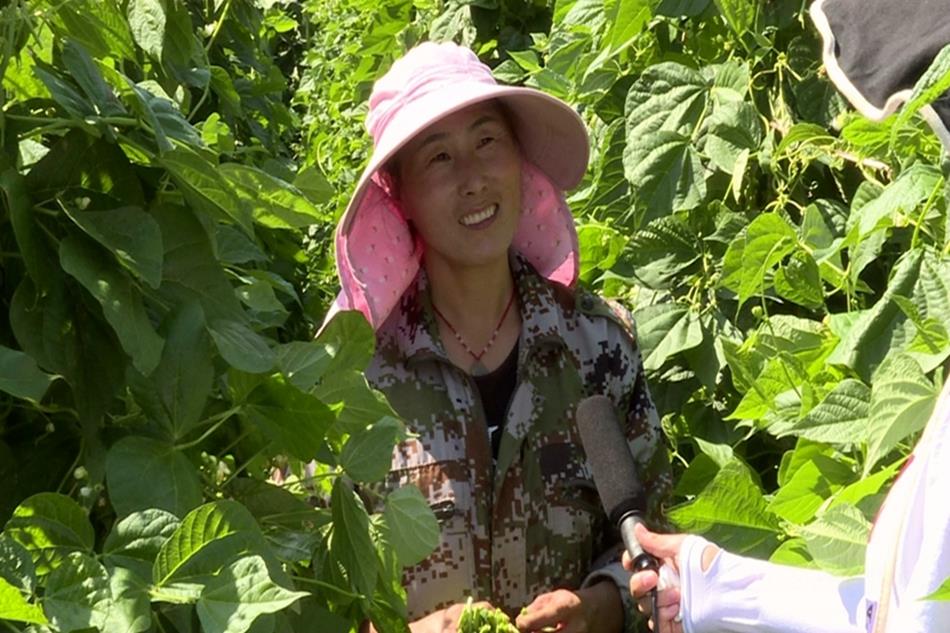 上午十点,村民赵明花已经卖完了两趟豆角再次来到地里采摘豆角,她告诉记者,今年种了七八分地的正茬豆角,由于价格好,已经卖了三千块钱。