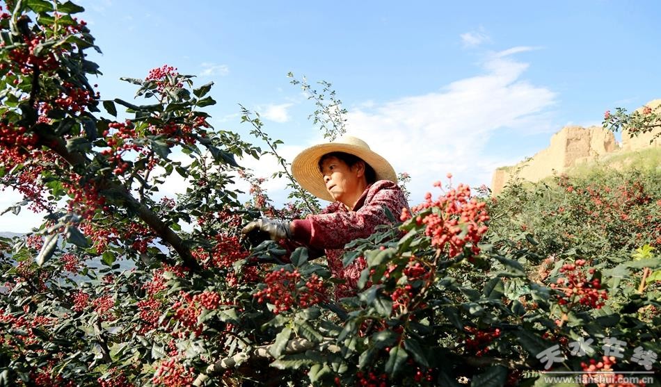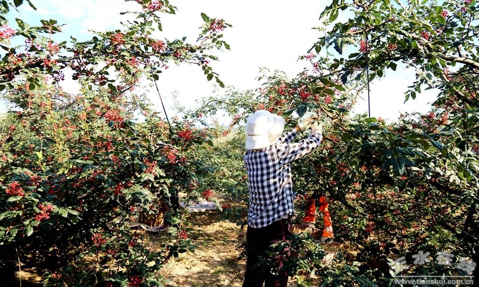 “今年的花椒长得特别好,预计能产12000斤,这几天正是采摘的最佳时期,我们已组织村民采摘好几批了”。毛韶强是花椒种植基地的负责人,大学毕业后回乡创业,在镇政府和村“两委”的引导下,经过4年的培育,拓荒建成了百亩花椒基地。