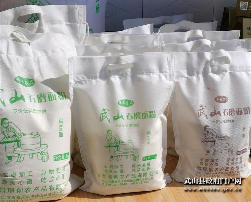 成立于2019年10月份的甘肃璟创农产品有限公司是咀头乡重点扶植的扶贫车间之一。负责人管维旗是土生土长的管山村人。他告诉记者,在奋斗的日子里他发现群众都喜欢吃石磨面粉,为此,他把经营石磨面粉作为奔向小康社会的“助手”。