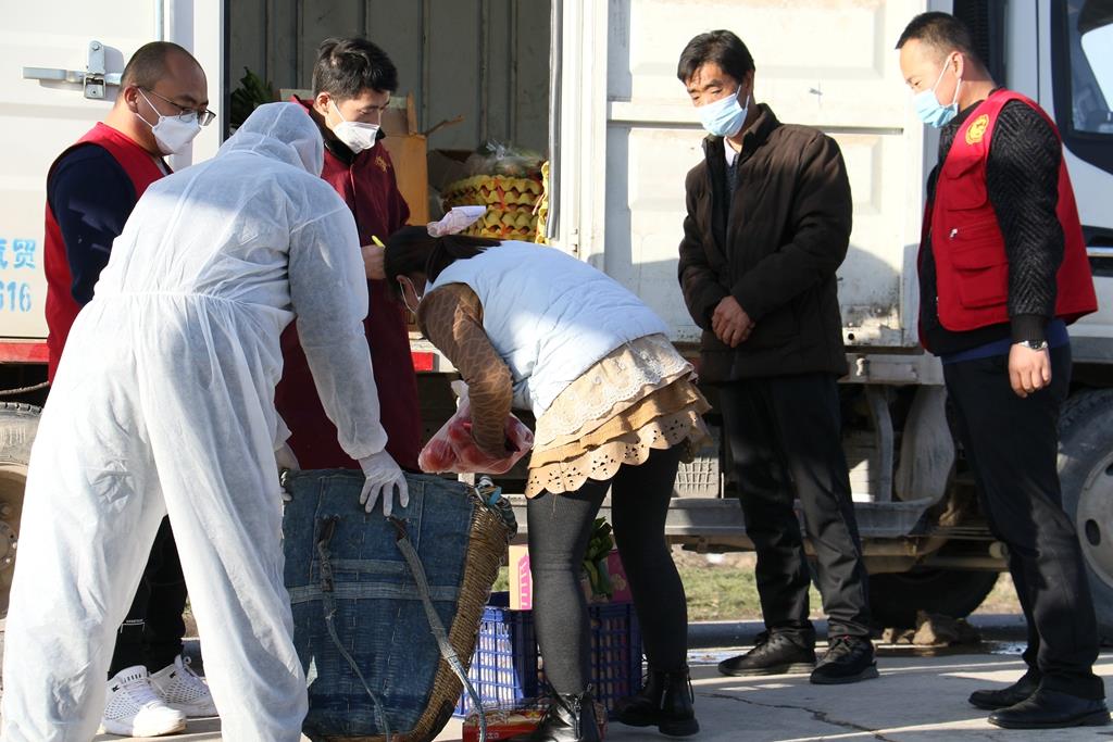 记者在杨河镇西山村物资派送点看到,洛门森源蔬菜果品市场有限责任公司疫情防控专线配送车前,群众自觉地排成间隔一米的长队,耐心、有序地领取生活用品。“这是由镇政府给我们西山村专门组织的派送食品蔬菜的车。疫情当前,我们群众不能外出购物,政府想我们所想,足不出户就能解决日常生活。我坚信有党的领导,疫情一定能够战胜。”西山村防控志愿者、村医陈学军说。