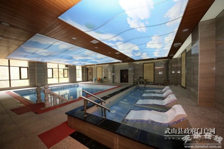 有泉——“蒸清水燠世争传,南峪温泉殆宛然。泻出石中汤样沸,溢澄池内鉴般濂。”(《明万历宁远志》)。武山温泉为宁远八景之一,被誉为“西北第一泉”,平均水温39℃,属低硫高酮负碳酸温泉,水质富含天然氡因子,能治疗50多种疾病,尤其对皮肤病、风湿病疗效显著,为极具医用价值的复合型矿泉。1953年,省卫生厅在温泉筹建省康复医院,疗养抗美援朝战争中负伤的志愿军伤病员。1957年,更名为甘肃省武山矿泉疗养院。1956年,组建兰州铁路局洛门疗养院。