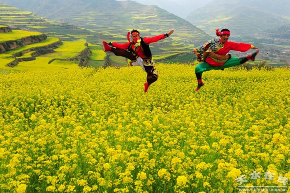 有武——武山是“全国武术之乡”。武山武术源远流长,崇文尚武底蕴深厚,县境古代为豲、羌部族活动地区,自秦汉、三国至唐、宋、明、清战乱不断,形成的县民尚武之风世代传承,武山人民以勤劳勇敢、崇文尚武而著称。全县习武蔚然成风,有六合拳、八步转等地方拳和国家套路、梅花枪、通备拳、硬气功、太极拳等门类,常年习武人数达7万多人,每年正月举办全县武林之春武术表演大会。成立了县、乡武术协会,组建武术队65个,武山武术代表队多年来在国家级比赛中获得奖牌300多枚。深入开展“武术进校园”,为国家培养了一大批武术后备人才。